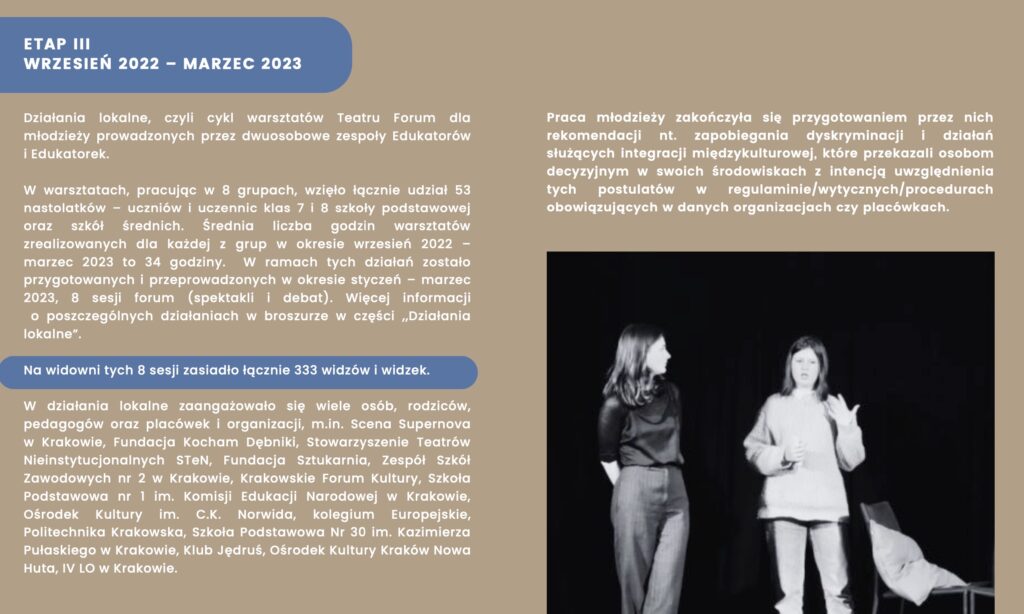 Podczas wydarzenia odbyła się sesja forum ze spektaklem Teatru Forum pt. „Zdrajca” przygotowanym przez młodzież Piotra Majewskiego i Doroty Kaczor.