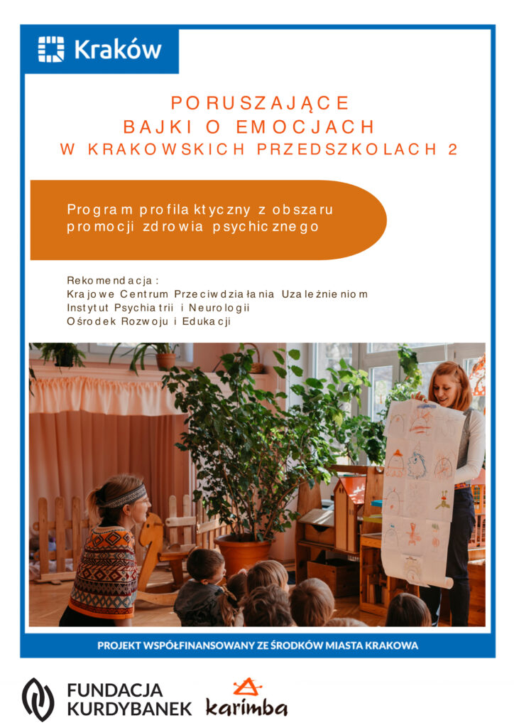 ]]> Poruszające Bajki o Emocjach w krakowskich przedszkolach https://kurdybanek.buzz/projekty/poruszajace-bajki-o-emocjach-w-krakowskich-przedszkolach/ Fri, 24 Jan 2025 19:09:38 +0000 https://kurdybanek.buzz/?p=3831 Projekt ten był działaniem profilaktycznym z obszaru promocji zdrowia psychicznego, którego celem było zwiększenie kompetencji emocjonalnych i społecznych dzieci w wieku przedszkolnym. To działanie miało wzmocnić umiejętności dzieci w rozumieniu swoich emocji, rozpoznawaniu ich u siebie i innych, radzeniu sobie z nimi, samoregulacji emocji i obniżaniu napięcia.