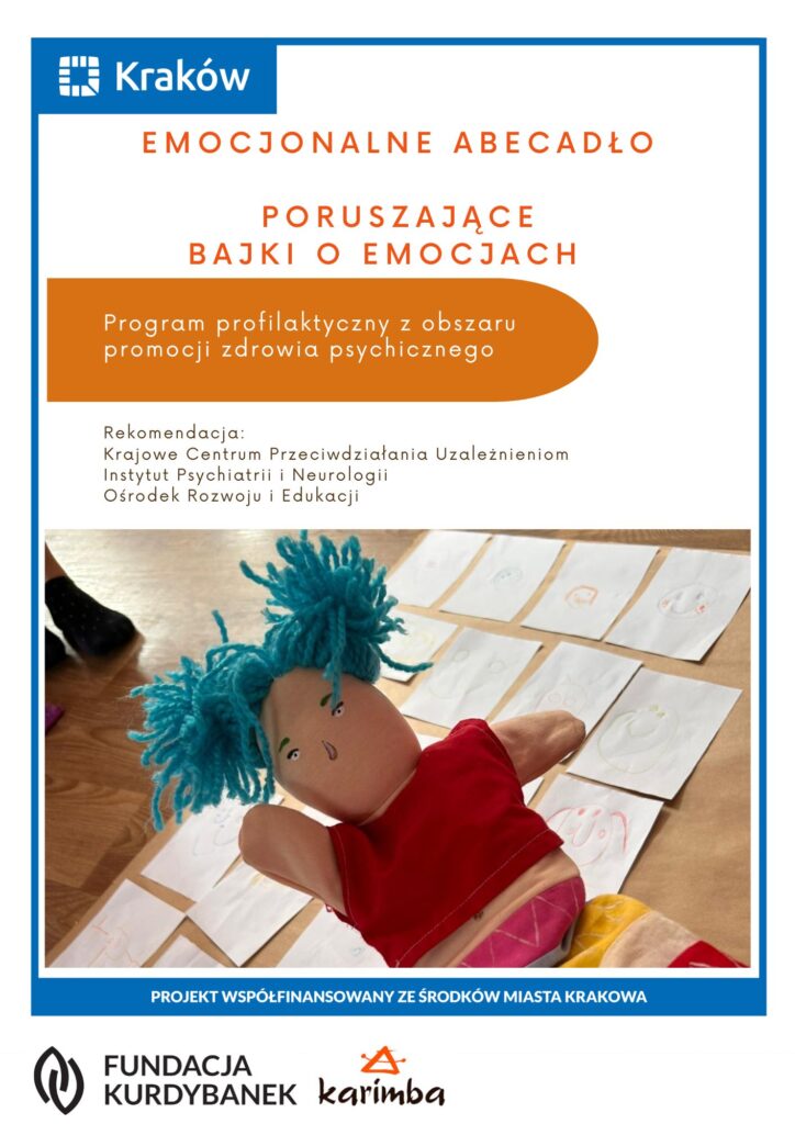 Projekt „Emocjonalne Abecadło – Poruszające Bajki o Emocjach” https://kurdybanek.buzz/aktualnosci/projekt-emocjonalne-abecadlo-poruszajace-bajki-o-emocjach/ Tue, 21 Oct 2025 12:43:36 +0000 https://kurdybanek.buzz/?p=3863 Od 1 września realizujemy kolejny projekt z obszaru promocji zdrowia psychicznego skierowany do krakowskich przedszkolaków, ich rodziców oraz nauczycieli wychowania przedszkolnego.