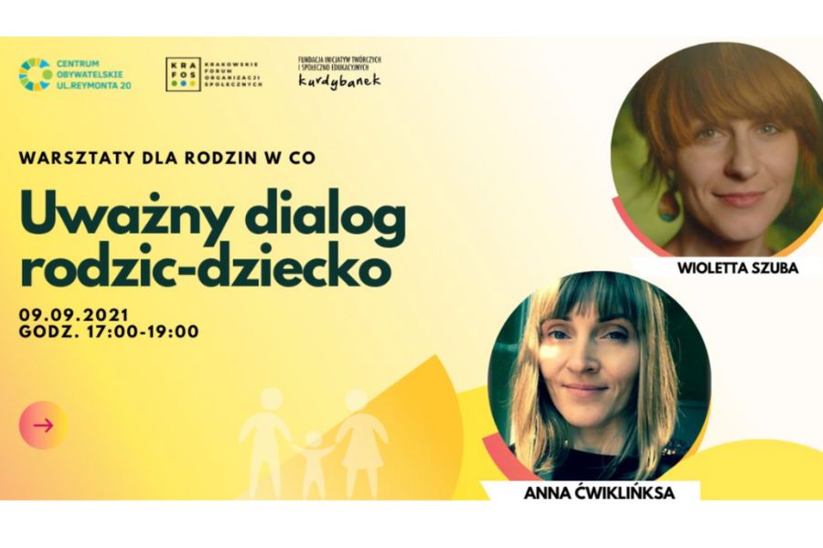 Zapraszamy na Warsztaty dla Rodzin – Uważny dialog rodzic-dziecko, które poprowadzimy 9 września w Centrum Obywatelskim.